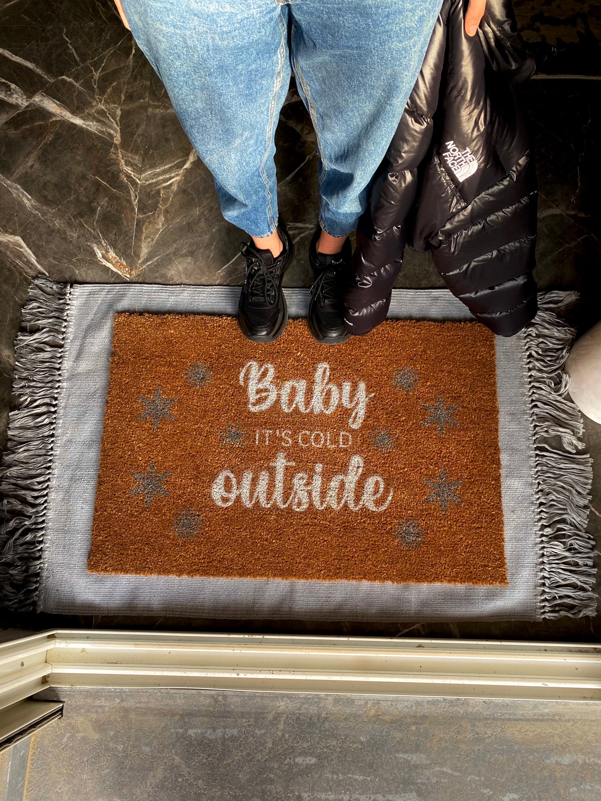 It's cold outside, let's get ready for Christmas by adding this doormat to your home's decoration. It may be freezing outside, but it's definitely warm and cozy inside with the family. This premium doormat is made of natural coir, a durable, dense fiber that scrapes shoes clean.