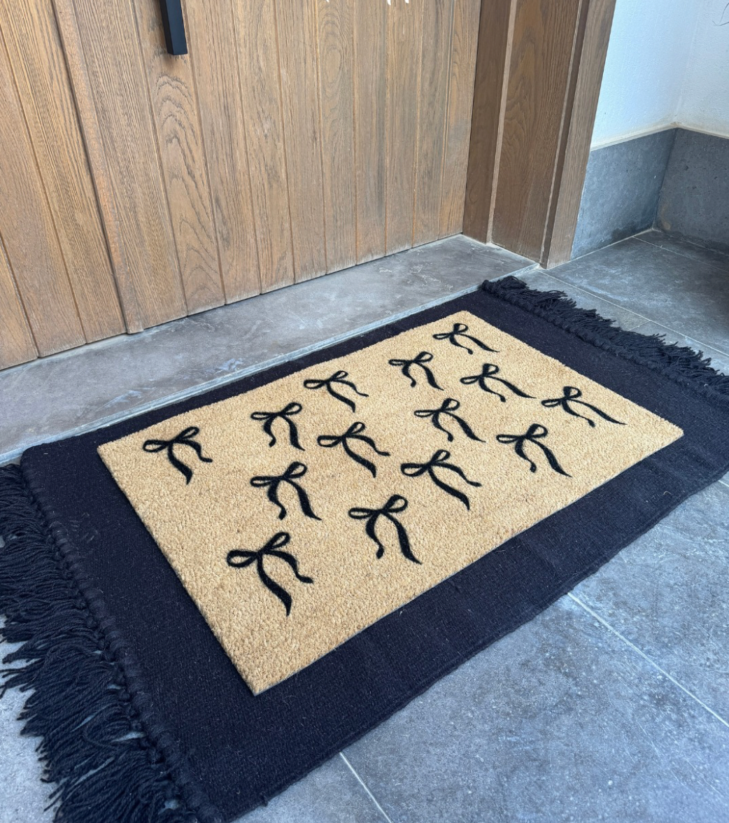 "Black Ribbons" is so trendy right now, so let's be crazy a little bit, SHALL WE ?This premium doormat is made of natural coir, a durable, dense fiber that scrapes shoes clean.