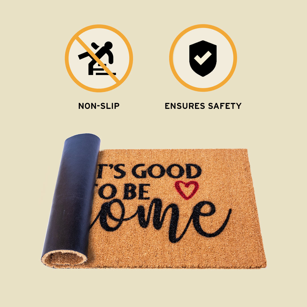 This premium doormat is made of natural coir, a durable, dense fiber that scrapes shoes clean.