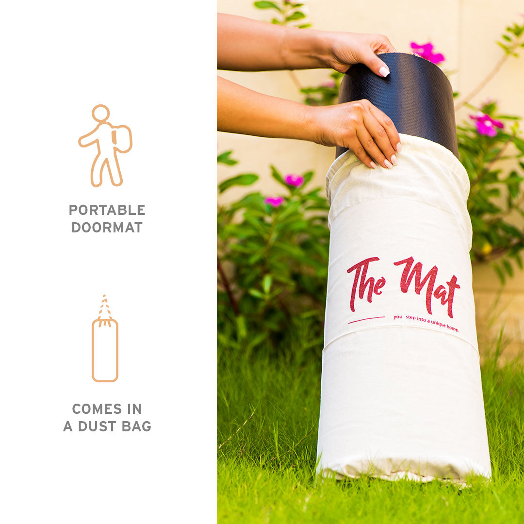 This premium doormat is made of natural coir, a durable, dense fiber that scrapes shoes clean.